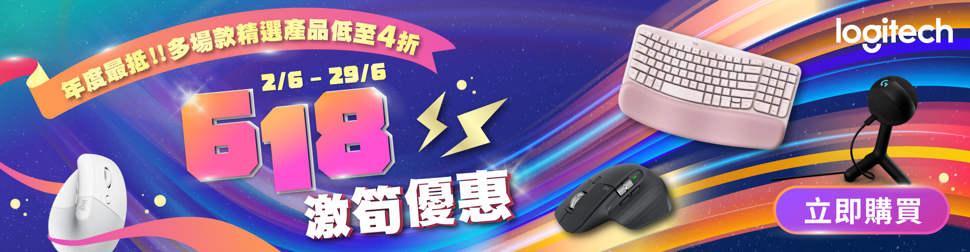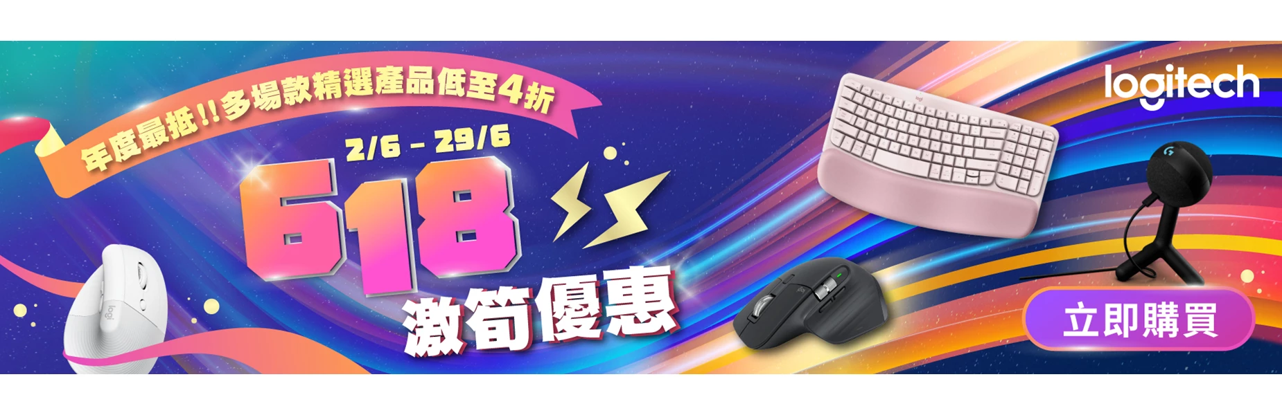 即日起直至2025年6月29日,購買指定Logitech指定精選產品低至4折起