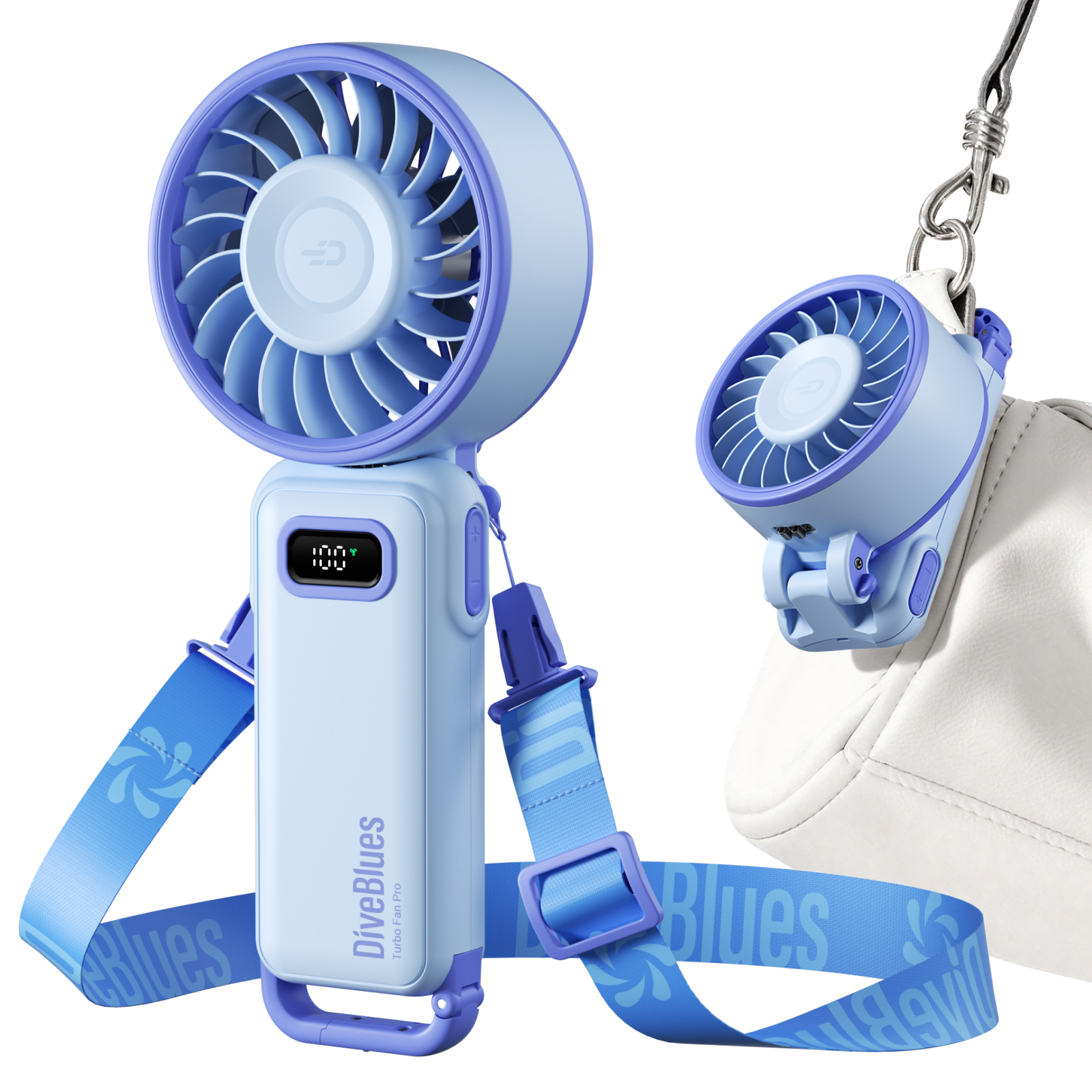 The Diveblues Fanzy Portable Handheld Fan is engineered for those who demand peak cooling performance in a compact, versatile design. Inspired by the silent roar of the midnight ocean, its Deep Sea Chill blue shade embodies ultimate stillness and unstoppable cooling. This fan features a powerful 7.4m/s high-speed turbo blower, delivering intense airflow for personal comfort whether indoors or outdoors.