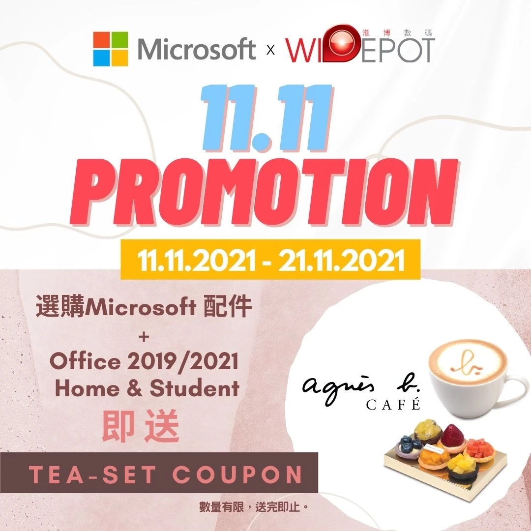 優惠 2. 購買任何Microsoft硬件產品連同Microsoft Office軟件一起下單,即送Agnes B Cafe下午茶優惠劵