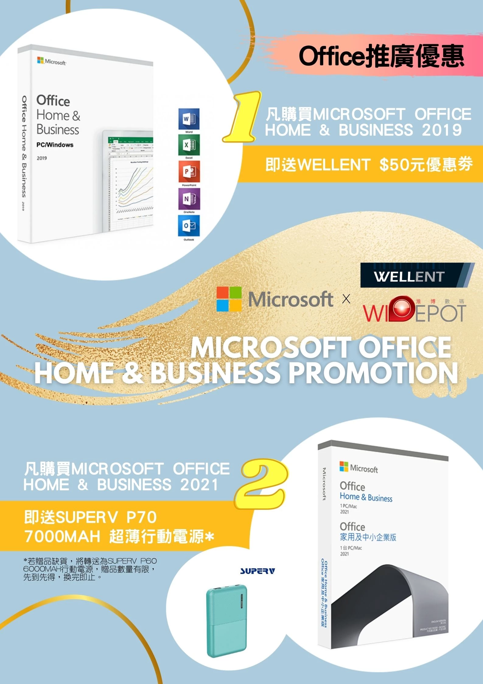 優惠 1. 購買Microsoft Office Home and Business 即送 $50偉倫電腦現金劵或 SuperV 7000mAh 行動電源