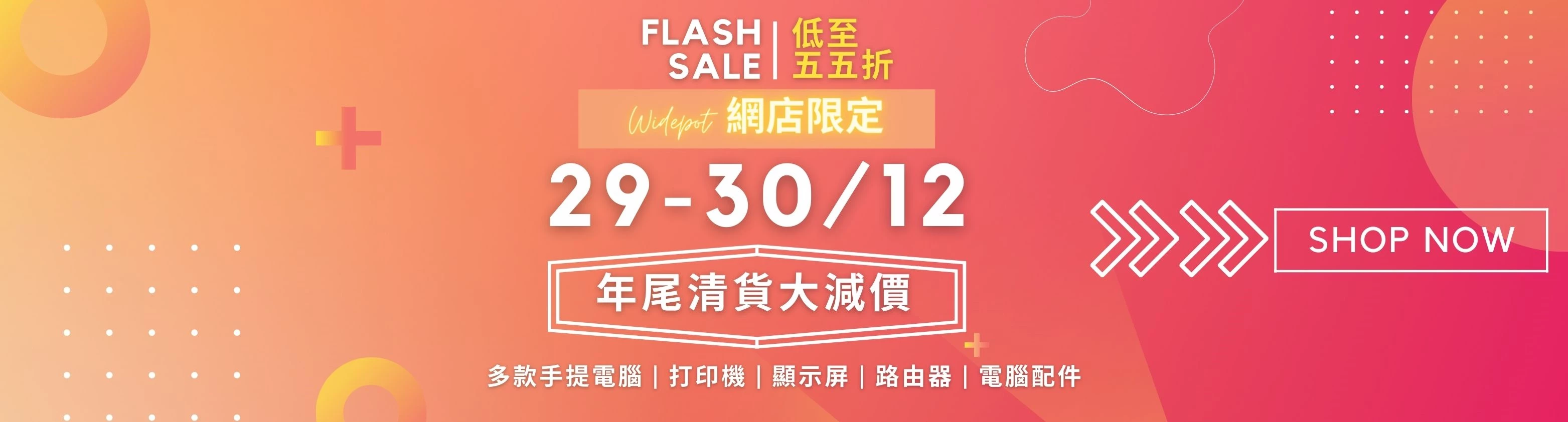由2021年12月29日-12月30日,Widepot舉行2021年尾精選清貨優惠,網店獨家限定,多款電腦產品以優惠清貨價發售,把握機會,以超低價帶走心頭好!