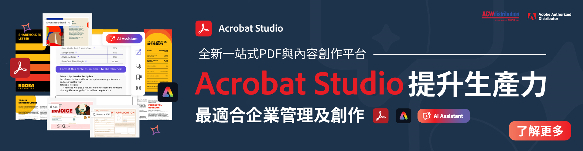 想了解更多 Acrobat Studio 最新功能及如何幫助企業更輕鬆管理文件? 可閱讀此文: 【一文了解 Acrobat Studio 2026】什麼是 Acrobat Studio?| 最新功能 | 更適合中小企使用 | Q&A| 限時優惠