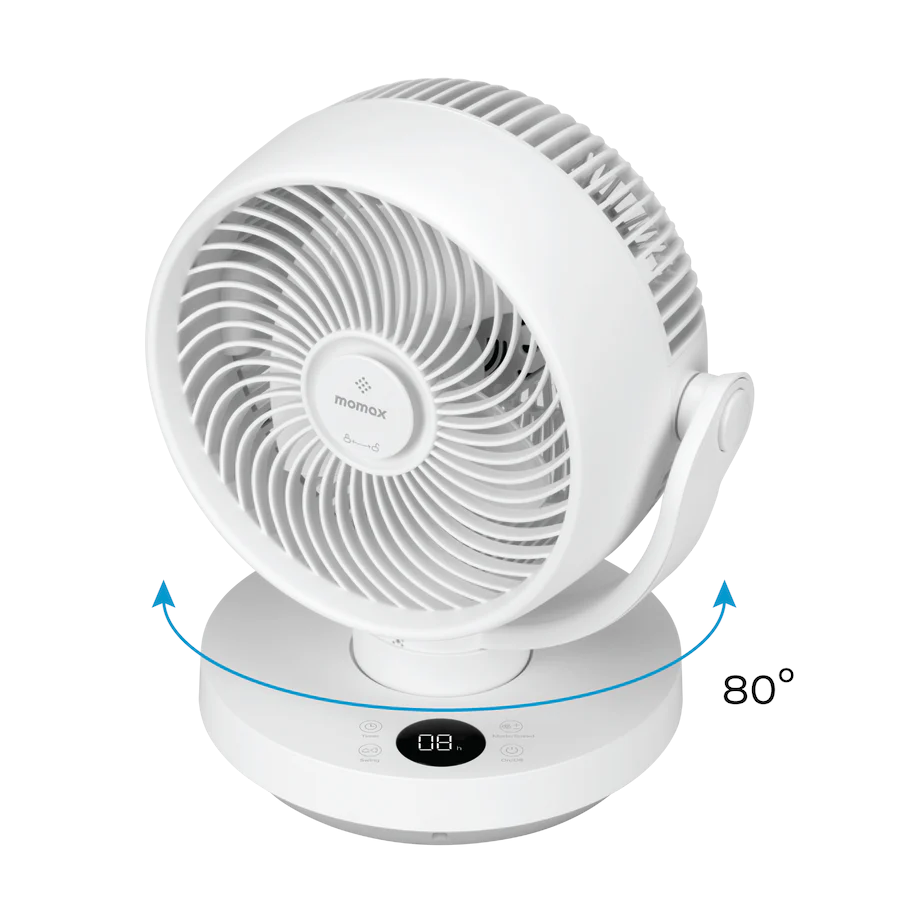 MOMAX Airoma 3D空氣循環扇(白色,型號IF16UKW)結合創新3D循環技術,能在整個房間內實現均勻風速分佈。多片風扇葉與自動轉向設計帶來多維度氣流,將涼風送至各個角落,提供全方位舒適體驗。