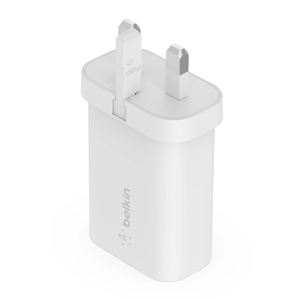 產品概覽 快速為三星智能手機充電,26 分鐘內電量從 0% 恢復至 50% 快速為 iPhone 8 或更新機型充電,30 分鐘內電量從 0% 恢復至 50% 配備 PPS 技術的動態電力傳輸,為三星智能手機提供高達 25W 電量,為 iPhone 提供高達 20W 電量 USB-C PD 3.0 認證 設計纖巧,方便出行 包裝內容: BOOST↑CHARGE™ USB-C® PD 3.0 PPS 插墻式充電器 25W 規格: 53 毫米 48.5 毫米 26 毫米