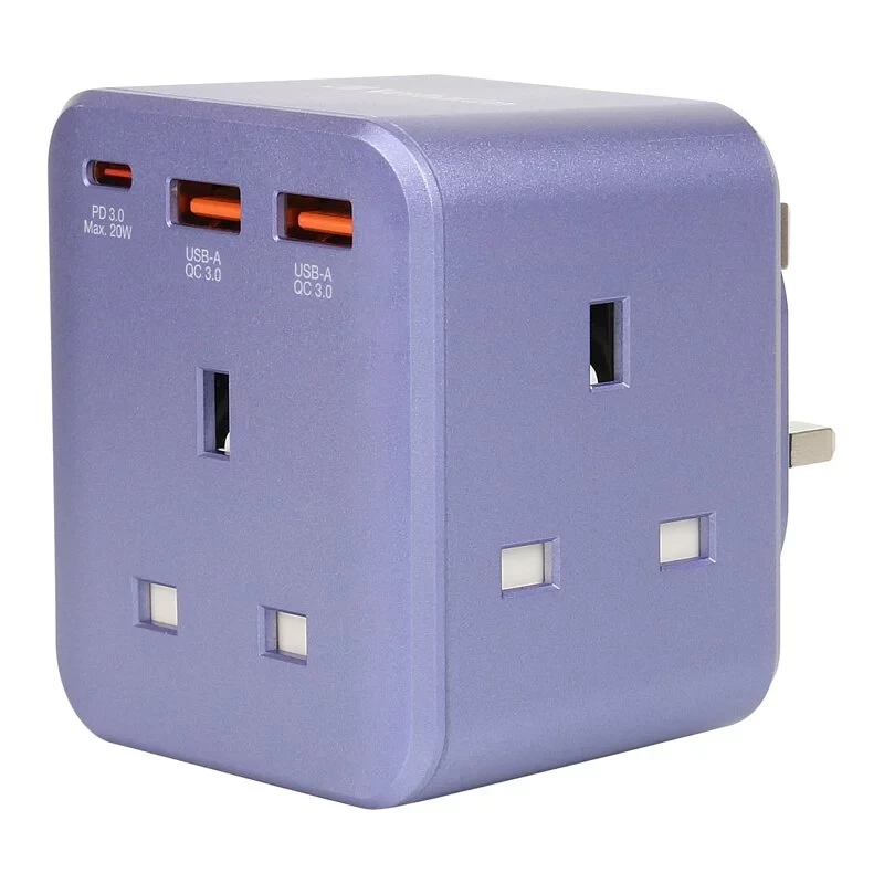 萬能插蘇設有3個AC插位,上方又有3個USB充電口,共支援高達 3250W功率,不需要額外插頭就可以為個人電子產品充電,亦適用於一般小型家電,輕鬆及安全地將插頭「一變六」!