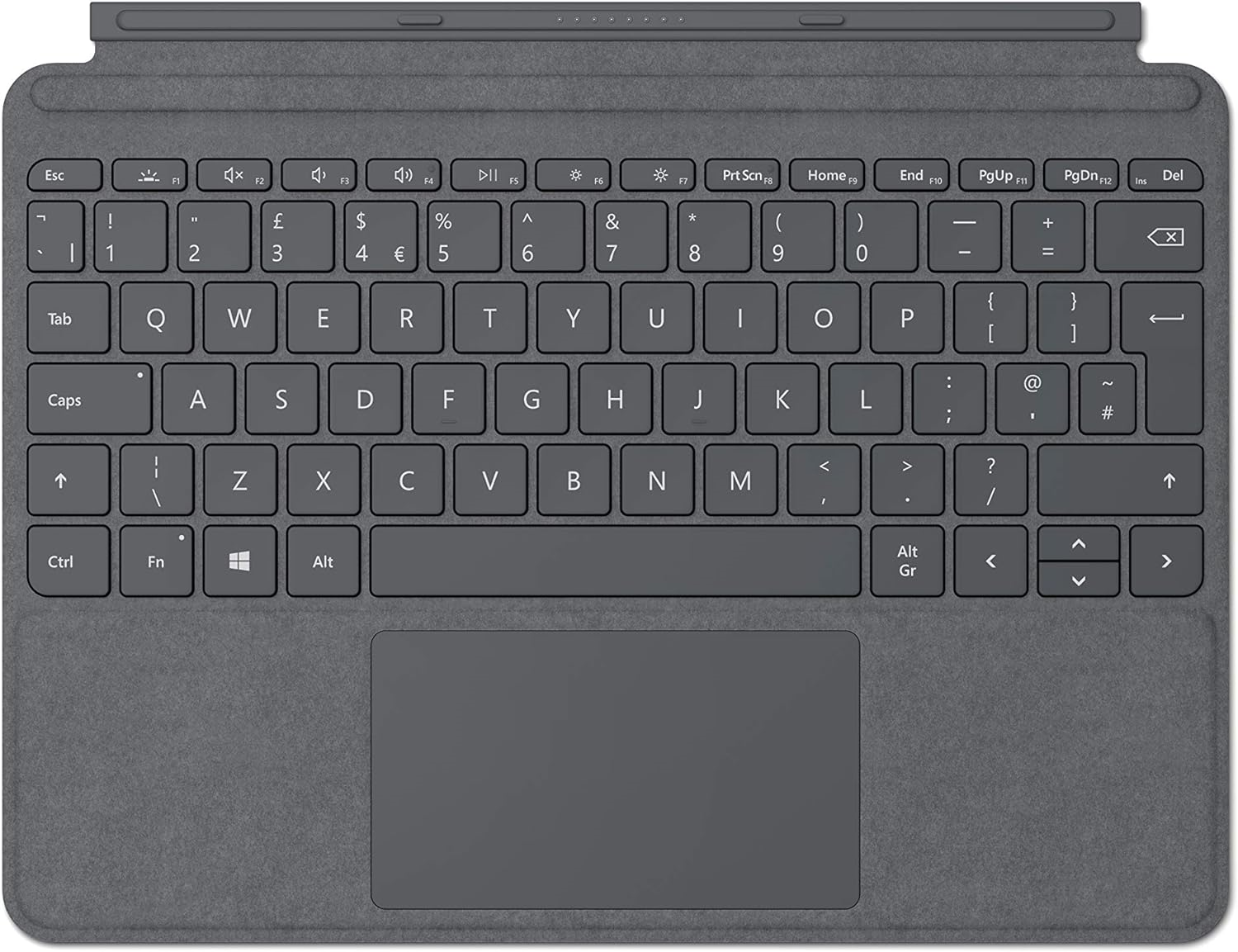 使用Surface Go Signature 鍵盤保護蓋體驗舒適打字體驗。 超薄精巧,兼具傳統筆記型電腦鍵盤的功能,包含背光按鍵和大尺寸玻璃觸控板。