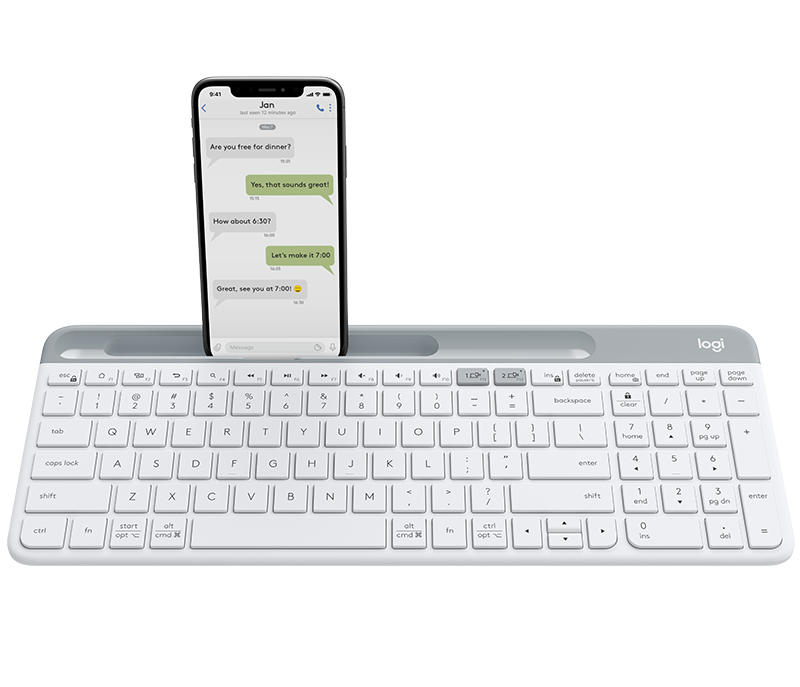 可搭配智慧型手機和平板電腦使用的電腦鍵盤。Easy Switch 按鈕讓您可使用相同的鍵盤,在兩個裝置間切換打字。 在電腦上開始打字,然後切換到手機鍵入訊息 — 手機可以放置在鍵盤的內建手機槽中,方便多工作業。